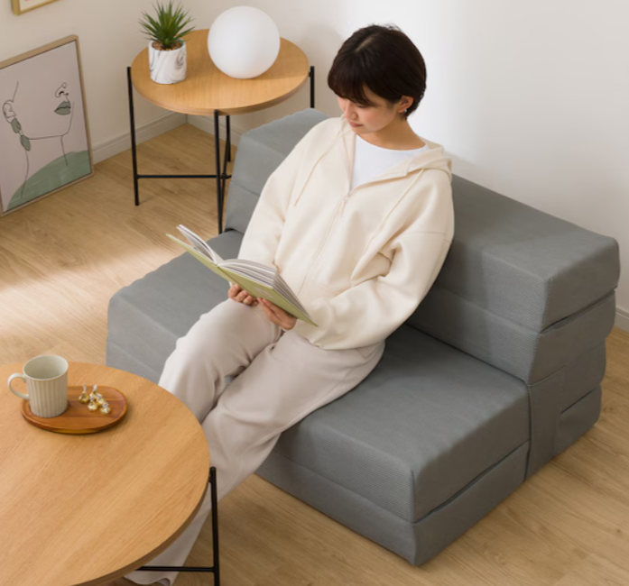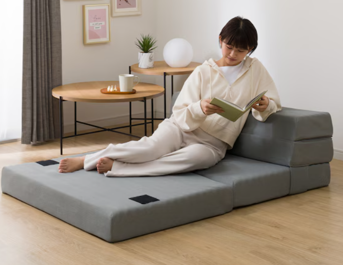 広げればマットレス、折りたためばソファになる3WAY設計。